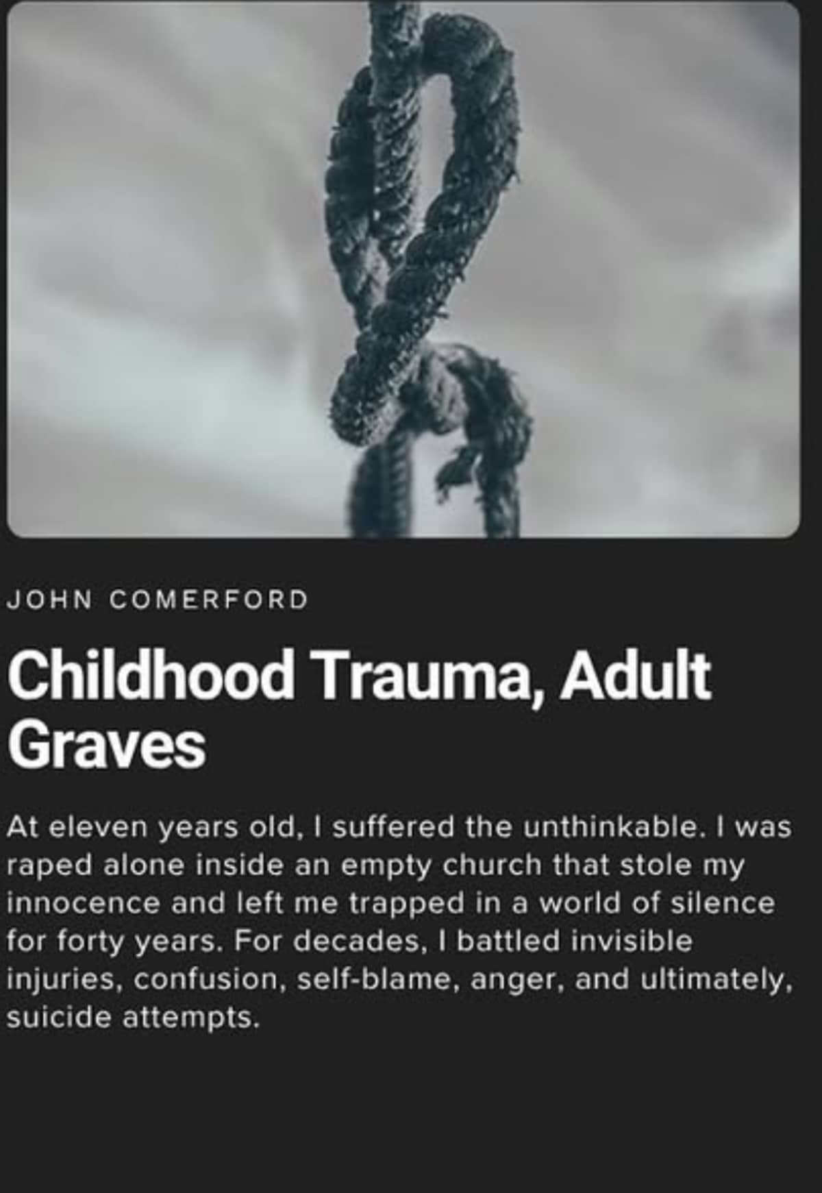 For too many men, the pain of childhood sexual abuse (CSA) is never acknowledged, let alone spoken of. Globally, more than 1 in 13 boys are sexually abused before 18, yet the repercussions for male survivors, especially suicide, are only starting to gain public attention. Behind closed doors, beneath the expected mask of masculinity, countless men hide wounds that shape their every thought and action